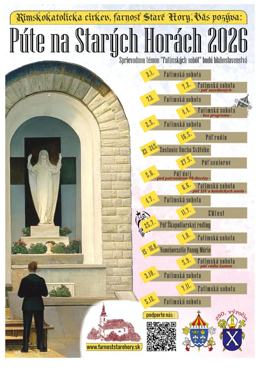 Staré Hory sú mariánskym pútnickym miestom s bohatou tradíciou. Viac ako naplnených láskou a úctou k Božej matke. Z pôvodne malej baníckej osady je dnes medzinárodne uznávané mariánske pútnické miesto, ktoré každoročne privíta desaťtisíce pútnikov nielen zo Slovenska. Starohorský kostol s milostivou sochou Panny Márie a Studnička prinášajú duchovné povzbudenie, posilu ako i očistenie od hriechov veriacim, ale aj neveriacim...